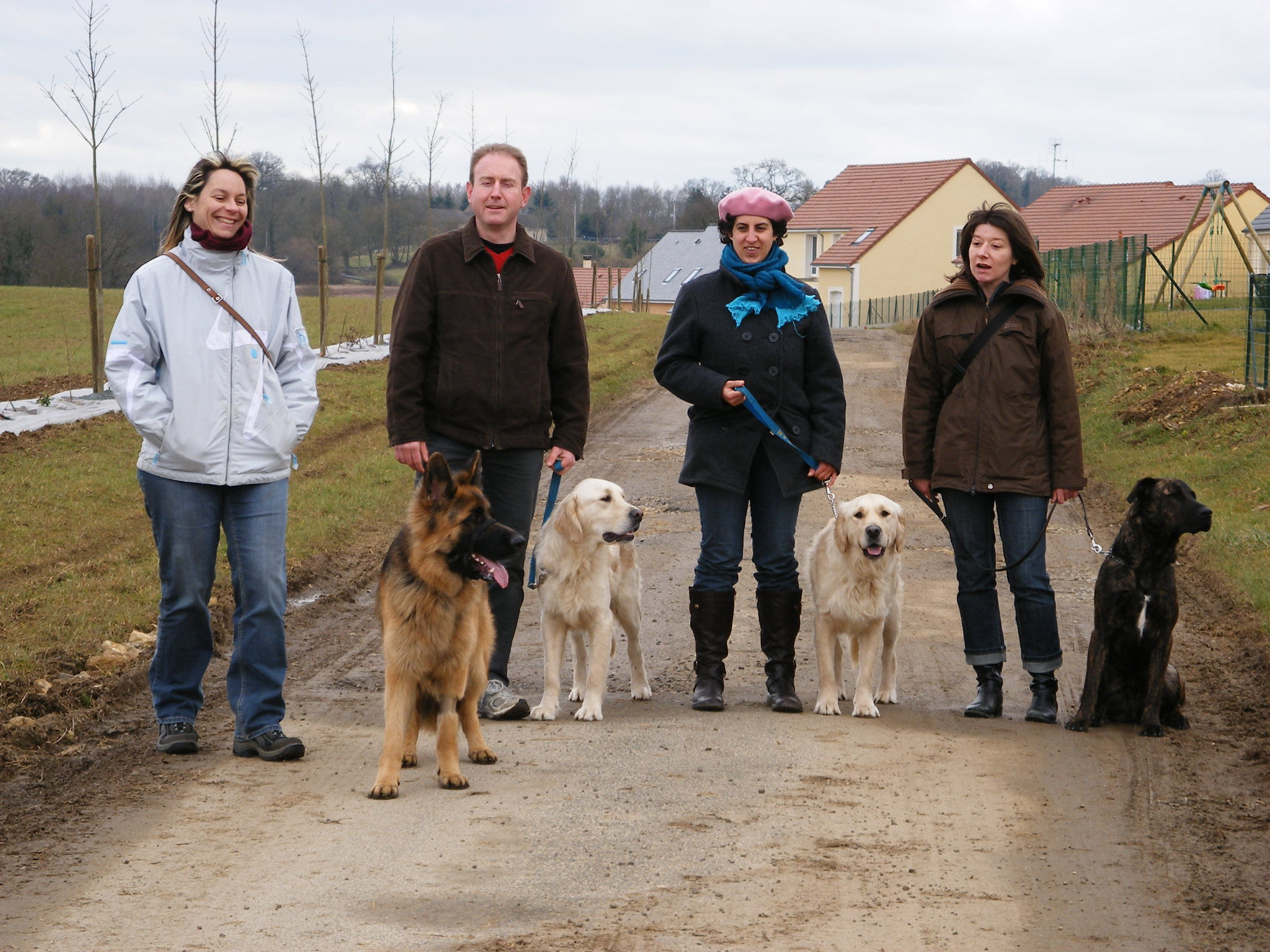 mettre en situation avec d'autres chiens. Les chiens ont un comportement qui leur est propre, certains se comportent très bien en ville malgré la présence d'un grand nombre d'odeurs différentes, de voitures, de personnes, de bruits,... ; mais ne peuvent pas rester calme en campagne source de nombreuses odeurs de gibiers, bruits de tracteurs, ... Pour d'autres c'est l'inverse. Votre compagnon peut également avoir un instinct de fuite lorsque vous l'emmenez sur un marché ou dans un autre lieu bien spécifique. C'est pour toutes ces raisons qu'il est important de travailler en groupe dans différents lieux, mais cela permet aussi de passer de bons moments avec des personnes qui peuvent avoir vécu les mêmes problèmes que vous avec leur chien. Vous et votre compagnon aurez peut-être également l'occasion de vous lier d'amitié avec d'autres membres (humains et chiens) du groupe de promenades.